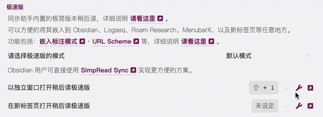 在 1.1.3 版中把稍后读的相关快捷键整理到 同步助手 → 导出 → 稍后读 里面,并增加了一些新的快捷键。